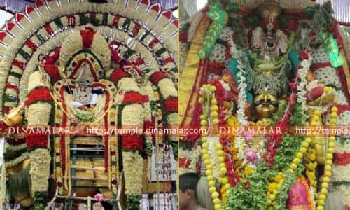 பொன்னேரி: பிரம்மோற்சவ திருவிழாவில், அகத்தீஸ்வரரும் கரிகிருஷ்ண பெருமாளும் சந்தித்த அரிய நிகழ்ச்சியை காண, ஆயிரக்கணக்கான பக்தர்கள் திரண்டனர். பொன்னேரி, திருஆயர்பாடி சவுந்தர்யவல்லி தாயார் சமேத கரிகிருஷ்ண பெருமாள் கோவிலில், பிரம்மோற்சவ விழா நடந்து வருகிறது. ஐந்தாம் நாளான, நேற்று முன்தினம் நள்ளிரவு, பெருமாளும், பொன்னேரி ஆனந்தவல்லி சமேத அகத்தீஸ்வரரும் ஒருசேர வந்து, பரத்வாஜ சுவாமி சன்னிதி முன்னிலையில், பக்தர்களுக்கு காட்சிதரும் சந்திப்பு திருவிழா, வெகு விமரிசையாக நடந்தது. நள்ளிரவு, 12.00 மணிக்கு துவங்கிய இந்த விழா, அதிகாலை 5.30 மணி வரை நடந்தது. கருட வாகனத்தில் புறப்பட்ட கரிகிருஷ்ண பெருமாள், ஹரிஹரன் பஜார் வீதியின் தேரடி முனையிலும், அதன் முனையில் ஆனந்த வல்லி, சண்டிகேஸ்வரர், விநாயகர், வள்ளி தெய்வானை ஆகியோருடன், காளை வாகனத்தில் அகத்தீஸ்வரர் பெருமானும் வீற்றிருந்தனர். விசேஷ வாத்தியங்களுடன் இருவருக்கும் மாலை, மரியாதைகள் செ<லுத்தப்பட்டன. ஒரே நேரத்தில் சிவாச்சாரியார்களும், பட்டாச்சாரியார்களும் சுவாமிகளுக்கு தீபாராதனை செய்தனர். அதை தொடர்ந்து, கரி கிருஷ்ண பெருமாளும், அகத்தீஸ்வரரும் ஒரே சமயத்தில் எழுந்தருளி பொன்னேரி கோதண்டராமர் சன்னிதியின் முன் வந்து, அங்கு பிரதிஷ்டை செய்யப்பட்டுள்ள அகத்திய, பரத்வாஜ முனிவர்களின் முன்னிலையில் சந்தித்து, காட்சி தந்தனர். பக்தர்கள் வெள்ளத்தில் நீந்தியபடி, கரிகிருஷ்ண பெருமாளும், அகத்தீஸ்வரரும் அருள்பாலித்தனர்.