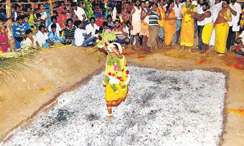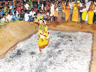 கும்மிடிப்பூண்டி: ஐயர்கண்டிகை அங்காள பரமேஸ்வரி கோவிலில், தீமிதி திருவிழா, சிறப்பாக நடைபெற்றது.