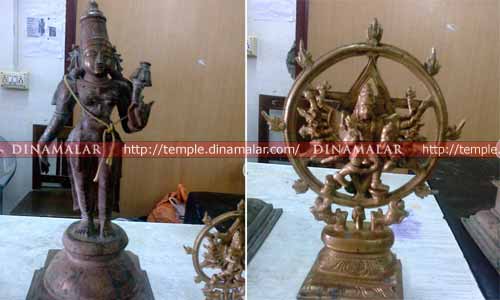 ஆட்டோவில் கடத்தல்: நேற்று காலை, சிலை கடத்தல் கும்பலை சேர்ந்த, தனலிங்கம், 38, என்பவர், சென்னை, மேற்கு மாம்பலத்தில் இருந்து ஆட்டோவில், பஞ்சலோக சுவாமி சிலைகளை கடத்துவது தெரியவந்தது. போலீசார் அங்கு விரைந்து சென்று, தனலிங்கத்தை மடக்கிப் பிடித்தனர். ஆட்டோவின் பின்பகுதியில், பதுக்கி வைத்திருந்த மூட்டையை அவிழ்த்து பார்த்த போது, பெருமாள், சிவன், பார்வதி, உமையாள் பரமேஸ்வரி, பார்வதி, விஷ்ணு, ஸ்ரீதேவி, பூதேவி, சக்கரத்தாழ்வார் உள்ளிட்ட, எட்டு சிலைகள் இருந்தன. சிவனும், பார்வதியும், ஒரே பீடத்தில் அமர்ந்து காட்சி தருவதுபோல் சிலை வடிவமைக்கப்பட்டு இருந்தது. இதையடுத்து தனலிங்கத்தை, போலீசார் கைது செய்தனர்.இதுகுறித்து, ஏ.டி.ஜி.பி., பிரதீப் வி பிலிப் உள்ளிட்ட உயர் போலீஸ் அதிகாரிகள் கூறியதாவது:பெருமாள், சிவன் பார்வதி, பார்வதி, உமையாள் பரமேஸ்வரி சுவாமி சிலைகள், 11ம் நூற்றண்டையும்; விஷ்ணு, ஸ்ரீதேவி, பூதேவி சுவாமி சிலைகள், 13ம் நூற்றண்டையும் சேர்ந்தவை. பிற்கால சோழர்கள், இந்த சிலைகளை பிரதிஷ்டை செய்து உள்ளனர்.சிலைகளின் சர்வதேச மதிப்பு, 80 கோடி ரூபாய் வரை இருக்கும். கைது செய்யப்பட்ட, பட்டதாரியான தனலிங்கத்தின் பூர்வீகம், பெரம்பலூர் மாவட்டம் என்ற போதிலும், 10 ஆண்டுகளாக, சென்னை, கோடம்பாக்கத்தில், மனைவி மற்றும் குழந்தையுடன் வசித்து வந்தார்.