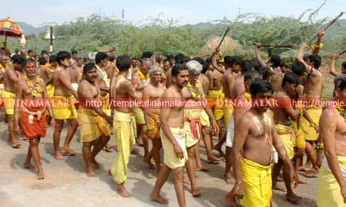எழுமலை : எழுமலை அருகே இ.கோட்டைப்பட்டி சவுண்டம்மன் கோயில் திருவிழாவிற்காக உத்தப்புரம் முருகன் கோயிலில் இருந்து கரகம் எடுக்கும் விழா நடந்தது. பூஜாரி கரகத்தை தலையில் தாங்கியபின், கைகளால் தொடாமல் 2 கி.மீ., துாரம் உள்ள கோட்டைப்பட்டி கோயிலுக்கு எடுத்து வந்தனர். கரகம் சாய்வது போல் தெரியும்போதெல்லாம் பக்தர்கள் தங்கள் உடலில் கத்தியால் வெட்டி, சரிவதை நிறுத்தி அழைத்து வந்தனர். பின் முளைப்பாரி, சக்தி நிறுத்துதல், மாவிளக்கு பொங்கல் வைத்து வழிபாடு நடத்தினர்.
