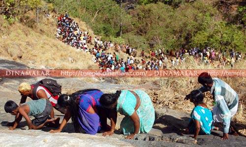 ஆற்றில் கோயில் வளாகம்: பக்தர்கள் பாதுகாப்புக்கும், அருவிகளில் குளிக்கவரும் சுற்றுலா பயணிகளின் பாதுகாப்புக்கு அங்கு ஒரு போலீசார் கூட இருப்பதில்லை. அமாவாசை நாட்களில் மட்டும் அடிவாரத்தில் இரு போலீசார் பெயரளவில் பாதுகாப்பு பணியில் இருப்பர். மழைகாலங்களில் முன்னெச்சரிக்கையாக சுற்றுலா பயணிகளை அங்கிருந்து அகற்றவோ, பக்தர்களை எச்சரிக்கை செய்யவோ போலீசார் இருப்பதில்லை. இதனால் வெளியூரில் இருந்து வரும் பக்தர்கள் அருவிகளில் மழை நேரத்தில் கூட குளிக்கின்றனர்.