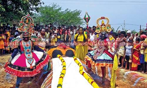 திருத்தணி: திரவுபதியம்மன் கோவிலில், நேற்று நடந்த தீமிதி திருவிழாவில், துரியோதனன் படுகளம் நிகழ்ச்சி நடந்தது. திருத்தணி ஒன்றியம், குடிகுண்டா கிராமத்தில் உள்ள திரவுபதியம்மன் கோவிலில், கடந்த 14ம் தேதி, கொடியேற்றத்துடன் தீமிதி திருவிழா துவங்கியது. மூலவருக்கு சந்தனக் காப்பு மற்றும் சிறப்பு பூஜைகள் நடந்தன. மதியம் 2:00 மணி முதல், மாலை 5:00 மணி வரை, மகாபாரத சொற்பொழிவும், இரவு 10:00 மணிக்கு, மகாபாரத நாடகமும் நடந்தது. விழாவின் நிறைவு நாளான நேற்று, காலை 10:30 மணிக்கு, துரியோதனன் படுகளம் நிகழ்ச்சி நடந்தது. இதில், பீமன், துரியோதனனை வீழ்த்தி, அவரது உதிரத்தால், திரவுபதியம்மன் கூந்தல் முடிக்கும் நிகழ்ச்சி நடந்தது. தொடர்ந்து, பெண்கள் கோவில் வளாகத்தில் பொங்கல் வைத்து, அம்மனுக்கு படைத்து வழிபட்டனர். மாலை 6:30 மணிக்கு, ஆயிரம் பக்தர்கள் காப்புக்கட்டி விரதம் இருந்து, தீ மிதித்தனர். பின், உற்சவர் அம்மன், சிறப்பு அலங்காரத்தில் வீதியுலா வந்து பக்தர்களுக்கு அருள்பாலித்தார். இதில், குடிகுண்டா மற்றும் அதை சுற்றியுள்ள கிராமங்களில் இருந்து, 10 ஆயிரத்திற்கும் மேற்பட்ட பக்தர்கள் கலந்து கொண்டு அம்மனை வழிபட்டனர். இன்று காலை 11:00 மணிக்கு, தருமர் பட்டாபிஷேகம் நிகழ்ச்சி நடைபெறுகிறது.