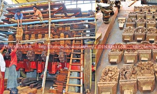 அழகர்கோவில்: அழகர்கோவில் சுந்தரராஜ பெருமாள் கோயிலில் உபயதாரர் வழங்கிய ரூ.90 லட்சத்தில் புதிய தேர் செய்யும் பணிகள் முடிந்து விட்டதால் ஆனியில் வெள்ளோட்டமும், ஆடியில் தேரோட்டமும் நடக்கிறது. இக்கோயில் ஆடித் தேரோட்டம் தனிச்சிறப்பு பெற்றது. தற்போதுள்ள தேர் 300 ஆண்டுகள் பழமையானது. மலைப் பாதையில் ஆடி, அசைந்து ஓடியதில், தேரில் இருந்த பல சிற்பங்கள் சிதைந்து விட்டன. தேரும் ஆட்டம் கண்டு விட்டது. தக்கார் வெங்கடாஜலம், நிர்வாக அதிகாரி வரதராஜன் ஆகியோரின் முயற்சியால் மதுரை பக்தர் ஒருவர் ரூ.90 லட்சத்தில் புதிய தேர் செய்து கொடுக்க முன்வந்தார். பணிகள் துவங்கப்பட்டு, தேர் செய்வதற்கான தேக்கு, வேங்கை மரங்கள் மியான்மர் நாட்டில் இருந்து இறக்குமதி செய்யப்பட்டன. பொன்னமராவதி ஸ்தபதி செல்வம் தலைமையில் 15 பேர், தேர் செய்யும் பணியில் ஈடுபட்டுள்ளனர். தேரில் பெருமாளின் பல்வேறு அவதாரங்கள் மற்றும் மாதவன், கேசவன், ரதி, மன்மதன், மன்னர் திருமலை நாயக்கர், பூதங்கள், கஜேந்திர மோட்சம், சிற்பங்கள் செதுக்கப் படுகின்றன. ஸ்தபதி செல்வம் கூறியதாவது: புதிய தேர் 5 நிலைகள் கொண்டவை. ஒவ்வொரு நிலையின் கீழ் பகுதியில் 124, மேலே 62 சிற்பங்கள் என 500க்கும் மேற்பட்ட சிற்பங்கள் பொருத்தப்படுகின்றன. சிற்பங்கள் அனைத்தும் பெருமாளின் அவதாரங்களையும், கோயிலில் நடைபெறும் தி ருவிழாக்களையும் மையமாக வைத்து நுணுக்கமாக கை வேலைப்பாடுகளால் செய்யப்பட்டுள்ளன என்றார். கோயில் நிர்வாகம் தரப்பில் கூறிய தாவது: 90 சதவீத பணிகள் முடிந்து விட்டன. சக்கரங்கள் மட்டும் பழைய தேரில் இருந்த ஹைட்ராலிக் சக்கரங்களை வைத்துள்ளோம். ஆனியில் வெள்ளோட்டம் விட அரசிடம் அனுமதி கேட்டுள்ளோம். வெள்ளோட்டம் முடிந்ததும் ஆடியில் புதிய தேரோட்டம் நடக்கும். கண்ணாடி கூண்டில் பழைய தேரை பக்தர்கள் பார்க்கும் வகையில் பாதுகாக்கப்படும் என்றனர்.