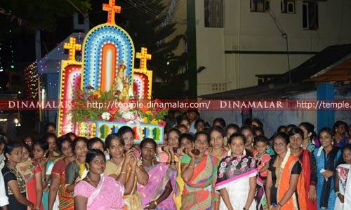 வத்தலக்குண்டு: மேலக்கோயில் பட்டியில் மாதா நவநாளை முன்னிட்டு பெண்கள் மின் அலங்கார சப்பரத்துடன் வீதி உலா வந்தனர். மேலக்கோயி ல்பட்டி தோமையார் சர்ச்சில் மே மாதம் முழுவதும் மாதா நவநாள் அனுசரிக்கப்பட்டது. நாள்தோறும் ஜெபம், திருப்பலிகள் நடந்தது. இறுதி நாளான நேற்று முன் தினம் வத்தலக்குண்டு தோமையார் சர்ச் உதவி பாதிரியார் பிரான்சிஸ் சேவியர் தலைமையில் சிறப்பு திருப்பலி நடந்தது. மாதா சிலை மின் அலங்கார சப்பரத்தை பெண்கள் தூக்கிக் கொண்டு வீதி உலா வந்தனர். சிறப்பு பூஜைகள் நடந்தன. பெண்கள் சப்பரம் எடுப்பதற்கான காரணம் குறித்து கிராமத்தினர் கூறுகையில், அனைவரும் திருவிழாவில் பங்கேற்க வேண்டும். அனைத்து பொறுப்புகளை ஆண், பெண் பகிர்ந்து கொள்ள வேண்டும் என்பதற்காக பெண்களும் சப்பரம் சுமக்கிறோம் என்றனர்.
