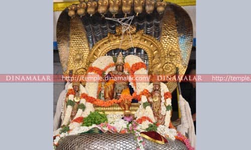 காஞ்சிபுரம்: காஞ்சிபுரம் வரதராஜ பெருமாள் கோவில் பிரம்மோற்சவத்தில், நேற்று, சேஷ வாகனத்தில், பரம பதநாதன் திருக்கோலத்தில், வரதராஜ பெருமாள் எழுந்தருளி பக்தர்களுக்கு அருள்பாலித்தார். காஞ்சிபுரம் வரதராஜ பெருமாள் கோவில், வைகாசி பிரம்மோற்சவத்தின் நான்காம் நாளான நேற்று, அதிகாலை 5:40 மணியள வில், பரமபதநாதன் திருக்கோலத்தில், வரதராஜ பெருமாள் சேஷ வாகனத்தில் எழுந்தருளினார். அவருடன் ஸ்ரீதேவி, பூதேவியரும் எழுந்தருளினர். மூவரும் கோவிலில் இருந்து புறப்பட்டு மாடவீதி, திருகச்சி நம்பி தெரு, விளக்கடி கோவில் தெரு, காமராஜர் சாலை, மேற்கு ராஜ வீதி வழியாக சென்று, கங்கைகொண்டான் மண்டபத்தில் எழுந்தருளினர். அங்கு நிவேதனம் நடை பெற்றது. அங்கிருந்து காலை 8:15 மணியளவில் புறப்பட்டு, செங்கழுநீர் ஓடை வீதி, கிழக்கு ராஜ வீதி, காந்தி சாலை வழியாக, காலை 11:30 மணியளவில், கோவிலை சென்றடைந்தனர்.