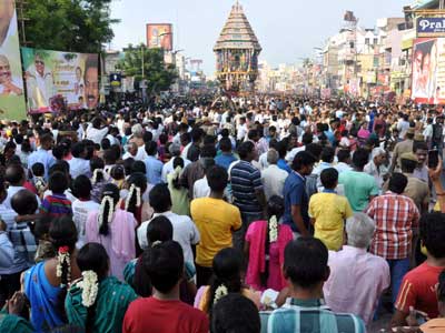 காஞ்சிபுரம்:காஞ்சிபுரம் வரதராஜ பெருமாள் கோவில், வைகாசி பிரம்மோற்சவத்தின் முக்கிய நிகழ்வான, தேரோட்டம் 6.6.15ல் கோலாகலமாக நடைபெற்றது.காஞ்சிபுரம் வரதராஜ பெருமாள் கோவில் வைகாசி பிரம்மோற்சவம், கடந்த 30ம் தேதி கொடியேற்றத்துடன் துவங்கியது. ஏழாம் 6.6.15 நேற்று தேரோட்டம் கோலாகலமாக நடைபெற்றது.முன்னதாக, அதிகாலை 2:20 மணியளவில் வரதராஜ பெருமாள் ஸ்ரீதேவி, பூதேவியருடன் கோவிலில் இருந்து புறப்பட்டு, காந்தி சாலையில், அலங்காரத்துடன் தயாராக இருந்த தேரில், காலை 3:00 மணிக்கு எழுந்தருளினார்.