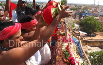 ஆண்டிபட்டி : தேனி மாவட்டம் ஆண்டிபட்டி மீனாட்சி சுந்தரேஸ்வரர் கோயில் ராஜகோபுர கும்பாபிஷேகம் நேற்று நடந்தது. ஏழு நிலை கொண்ட ராஜகோபுரம் ரூ. 41 லட்சம் செலவில் கட்டப்பட்டது. கும்பாபிஷேகத்திற்கான முதல் கால பூஜைகள் ஜூலை 6 ல், விக்னேஸ்வர பூஜையுடன் துவங்கியது. முதல் நாளில் கணபதி ஹோமம், நவக்கிரக ஹோமம், தன பூஜை, லட்சுமி பூஜை நடந்தது. ஐந்து நாட்கள் நடந்த பூஜையில், திருவிடைமருதூர் கண்ணப்ப சிவாச்சாரியார் தலைமையில் 75 சிவாச்சாரியார்கள் 96 வகை மூலிகைப்பொருட்களுடன் ஹோமம் வளர்த்தனர். வேதபாராயணம், தேவாரம் பாடல்கள் பாடி 600 குடங்களில் நவ கைலாசங்களில் இருந்து கொண்டு வரப்பட்ட புனித நீரை கொண்டு பூஜைகள் செய்தனர். நேற்று காலை சுமார் 9.30 மணிக்கு ராஜகோபுரத்தில் உள்ள ஏழு கலசங்களுக்கும், மூலவர் சன்னதி, அம்மன் சன்னதி, விநாயகர் சன்னதி, முருகன் சன்னதி, சண்டிகேஸ்வரர் சன்னதிகளுக்கும் சிவாச்சாரியார்கள் புனித நீர் ஊற்றி கும்பாபிஷேகம் செய்தனர். கருடன்: கும்பாபிஷேகத்தின் போது இரண்டு கருடன்கள் கோபுரத்தின் மீது வட்டமடித்ததை பார்த்த பக்தர்கள் ஆனந்த பரவசமடைந்தனர். பின்னர் மகாதீபாராதனையும், மூலவருக்கும், அம்மனுக்கும் சிறப்பு அபிஷேக, ஆராதனையும் நடந்தது. பக்தர்கள் மீது கும்பாபிஷேக தீர்த்தம் தெளிக்கப்பட்டது. கோயில் சார்பில் அன்னதானம் வழங்கப்பட்டது.