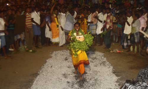 உத்திரமேரூர்: ஆனம்பாக்கத்தில், திரவுபதி அம்மன் கோவிலில், தீமிதி விழா, நேற்று கோலாகலமாக நடந்தது.