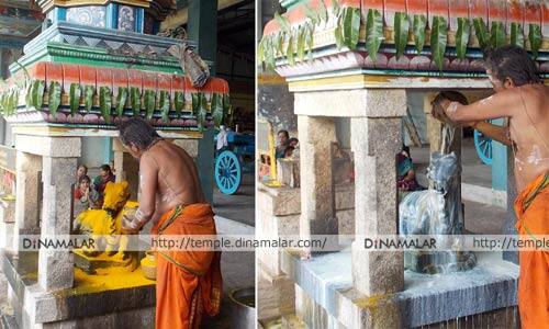 விளமல்: திருவாரூர் அருகே விளமல் பதஞ்சலி மனோகரர் கோவிலில் பிரதோஷத்தை முன்னிட்டு கோவில் நுழைவு வாயிலில் உள்ள நந்திக்கு பல்வேறு திரவியங்கள் மற்றும் நறுமணப்பொருட்களால் சிறப்பு அபிஷேகம் செய்து, பின்னர் அம்பாள் மற்றும் சிவனுக்கு சிறப்பு பூஜை செய்து பக்த ர்களுக்குகோவில் சிவாச்சாரியர் சக்தி சந்திரசேகரர் அருள்பிரசாதம் மற்றும் அன்னதானம் வழங்கினார். இதில் சுற்றுப்பகுதி பக்தர்கள் பங்கேற்று சுவாமி தரிசனம் செய்தனர்.