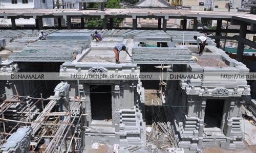 வேலைப்பாட்டில் அதிசயம்: பொறியாளர் ஆர்.சுந்தரம் கூறியதாவது: திருப்பணிக்காக தமிழகம் முழுவதும் 20 பழமையான கோயில்களை பார்வையிட்டோம். 800 ஆண்டு பழமையுடன் கோயில் கற்சிற்பங்களை வடிமைத்து வருகிறோம். சில தினங்களுக்கு முன் தான் மலைக்கோட்டையில் உள்ள விக்ரகம் இல்லாத அபிராமி அம்மன் கோயிலை பார்த்தோம். அதைப் போன்றே, தற்போது கட்டப்படும் கோயிலின் வேலைப்பாடும் இருந்தது அதிசயமாக இருந்தது. ஆறு மாதங்களில் திருப்பணிகள் முடிந்துவிடும் என்றார்.