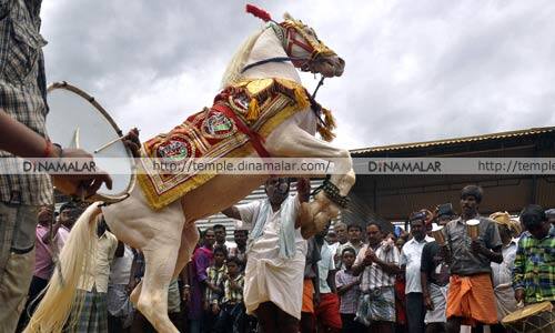 குதிரை மற்றும் மாட்டுச்சந்தை: பல நூறு ஆண்டுகள் பழமை வாய்ந்த இக்கோவிலில், புகழ்பெற்ற மாடு மற்றும் குதிரை சந்தை நடப்பது தனிச்சிறப்பு. வெளி மாவட்டம் மற்றும் பிற மாநிலத்தில் இருந்து உயர் ரக மாடுகள், குதிரைகள், ஆடுகள், பறவைகள் என, விற்பனை மற்றும், கண்காட்சிக்காக அதன் உரிமையாளர்கள் கொண்டு வந்துள்ளனர். அதில், பர்கூர் இன செம்மறை மாடுகள், காங்கேயம் காளைகள், ஓங்கோல் எனும் ஆந்திர மாடுகள், பாகிஸ்தானை பூர்வீகமாக கொண்ட குள்ள ரக மாடுகள், நாட்டு மாடுகள், ஜெர்சி, சிந்து போன்ற கலப்பின மாடுகளும், காட்டியவாடி, மார்வார் எனப்படும் உயர்ரக குதிரைகள், சாதாரண குதிரைகள், வெளிநாட்டு ஆடுகள், நான்கு கொம்புள்ள அதிசய ஆடு, பேசும் ஆஸ்திரேலியா கிளி, வெளிநாட்டு நாய்கள், பூனைகள் என, ஏராளமான பறவை மற்றும் விலங்கினங்கள் கண்காட்சியில் இடம் பெற்றன. தவிர, மாடு மற்றும் குதிரைகளுக்கு தேவையான சாட்டைகள், கயிறு, சலங்கை, கழுத்து பட்டை, அலங்கார துணிகள் பல வண்ணங்களில் விற்பனைக்கு உள்ளன. வரும், 16ம் தேதி வரை இச்சந்தையுடன், திருவிழாவும், பக்தர்கள் மற்றும் பொதுமக்கள் வருகையும் களை கட்டும்.