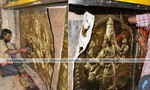 நிர்வாக அதிகாரி உமாதேவி கூறியதாவது: கோவிலின் கருவறையில் எவ்வித மாற்றம் செய்யப்படுவது இல்லை. அதே நேரத்தில், தொல்பொருள் துறையினர் கேட்டுக் கொண்டபடி செப்பு தகடு அகற்றப்பட்டுள்ளது. இந்த தகடு குறித்த எவ்வித ஆவணமும் கோவில் நிர்வாகத்திடம் இல்லை. இதனால், மீண்டும் தகடு பதிக்கப்படுமா என்பதை துறைதான் முடிவு செய்யும். தொல்பொருள் துறையின் ஆய்வு அறிக்கைக்கு பின், திருப்பணி தொடர்ந்து நடைபெறும். இவ்வாறு, அவர் கூறினார்.