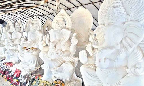 வழிபடுவதுடன், பொது இடங்களில் பெரிய அளவிலான சிலைகளை வைத்தும் வழிபடுவது வழக்கமாக உள்ளது.இதற்காக, விநாயகர் சிலை தயாரிக்கும் பணிகள், நாடு முழுவதும் தீவிரமாக நடந்து வருகின்றன. திருப்போரூர் மற்றும் சுற்றுப்புற பகுதிகளில், ராஜஸ்தான் மாநிலத்தை சேர்ந்தவர்கள், விநாயகர் சிலை தயாரிப்பில் ஈடுபட்டு உள்ளனர்.