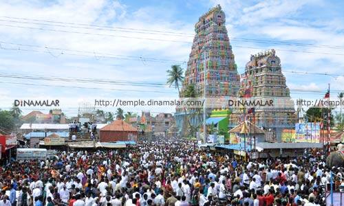 சிவகங்கை: காளையார்கோவில் சொர்ணகாளீஸ்வரர் கோயிலில் நேற்று காலை 10:45 மணிக்கு சிவாச்சாரியார்கள் கோபுர கலசத்தில் புனித நீர் ஊற்றினர். கருடன் 3 முறை வானத்தில் வட்டமிட, பல்லாயிரக்கணக்கான பக்தர்களின் "ஓம் நமச்சிவாயா கோஷம் விண்ணை முட்ட கும்பாபிஷேகம் நடந்தது. சிவகங்கை மாவட்டம் காளையார்கோவில் சொர்ண காளீஸ்வரர் கோயிலில்,நேற்று காலை 4:30 மணிக்கு 6வது காலயாகசாலை பூஜையும்,6:45 மணிக்கு பரிவார மூர்த்திகள் விமான கலசத்தில் புனித நீர் ஊற்ற கும்பாபிஷேகம் நடந்தது.நேற்று காலை 10:10 மணிக்கு யாக சாலையில் இருந்து 37 கலசங்களில் சிவாச்சாரியார்கள் புனித நீர் எடுத்து கோயிலுக்கு வந்தனர். அப்போது கருடன் ராஜகோபுரத்தை சுற்றி வானத்தில் 3 முறை வட்டமிட்டது. பின்னர் சிவாச்சாரியார்கள் சிறிய ராஜகோபுரத்தில் 5 கலசம், பெரிய ராஜகோபுரத்தில் 9 கலசம் உட்பட 25 விமானத்தில் உள்ள 37 கலசங்களில் காலை 10:45 மணிக்கு புனித நீர் ஊற்றி கும்பாபிஷேகத்தை நடத்தி வைத்தனர். பின், மாலை 5 மணிக்கு மகாஅபிஷேகம், அலங்காரம், தீபாராதனை நடந்தது. சிங்கப்பூர், மலேசியாவில் வசிக்கும் தமிழர்கள் மட்டுமின்றி பிற மாவட்டத்தில் இருந்து 50 ஆயிரத்திற்கும் மேற்பட்டோர் பக்தர்கள் வந்திருந்ததாக போலீசார் தெரிவித்தனர். பக்தர்களின் வசதிக்கு சிறப்பு பஸ்கள் இயக்கப்பட்டன. ஆன்மிக எட்டாம் நாளான இன்று மாலை 5 மணிக்கு சுவாமி, அம்பாளுக்கு திருக்கல்யாணமும், இரவு 8 மணிக்கு பஞ்சமூர்த்திகள் புறப்பாடுடன் விழா நிறைவு பெறுகிறது.