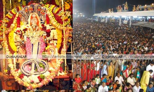 செஞ்சி: மேல்மலையனுார், அங்காளம்மன் கோவிலில் நடந்த அமாவாசை ஊஞ்சல் உற்சவத்தில், லட்சக்கணக்கான பக்தர்கள் பங்கேற்றனர். விழுப்புரம் மாவட்டம், மேல்மலையனுார் அங்காளம்மன் கோவிலில், நேற்று முன்தினம் இரவு அமாவாசை ஊஞ்சல் உற்சவம் நடந்தது. காலையில் அம்மனுக்கு சிறப்பு அபிஷேகம் செய்து, தங்க கவசம் அணிவித்தனர். இரவு 11:00 மணிக்கு, அங்காளம்மன் ஊஞ்சல் மண்டபத்தில் சிறப்பு அலங்காரத்தில் எழுந்தருளினார். பக்தர்களும், கோவில் பூசாரிகளும் பக்தி பாடல்களையும், தாலாட்டு பாடல்களையும் பாடினர். இரவு 12:15 மணிக்கு, ஊஞ்சல் உற்சவம் நிறைவடைந்தது. இந்து சமய அறநிலையத் துறை ஆணையர் வீரசண்முகமணி, இணை ஆணையர் வாசுதேவன், உதவி ஆணையர்கள் பிரகாஷ், மோகனசுந்தரம், அறங்காவலர் தலைவர் வடிவேல், தலைமை பூசாரி சேகர் மற்றும் அறங்காவலர்கள் உற்சவ ஏற்பாடுகளை செய்தனர். டி.எஸ்.பி., முரளிதரன் தலைமையில் போலீசார் பாதுகாப்பு பணியில் ஈடுபட்டனர். அரசு போக்குவரத்து கழகம் சார்பில் சென்னை, புதுச்சேரி, வேலுார் உள்ளிட்ட இடங்களில் இருந்து சிறப்பு பஸ்கள் இயக்கப்பட்டன. லட்சக்கணக்கான பக்தர்கள் கலந்து கொண்டு, சாமி தரிசனம் செய்தனர்.