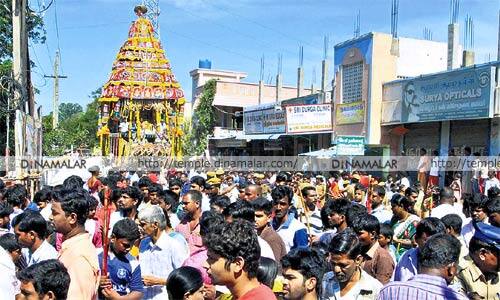 திருவேற்காடு: திருவேற்காடு தேவி கருமாரியம்மன் கோவிலில், நேற்று நடந்த ஆடி திருவிழா தேரோட்டத்தில் அம்மனுக்கு பூ மாலைகள் சாற்றி, பக்தர்கள் நேர்த்திக்கடன் செலுத்தினர் அம்பத்துார் அடுத்த திருவேற்காடு தேவி கருமாரியம்மன் கோவிலில், ஆடி திருவிழா, நேற்று காலை சிறப்பு பூஜைகளுடன் நடந்தது. அலங்கரிக்கப்பட்ட அம்மன் எழுந்தருளிய தேர், காலை 7:30 மணியளவில், கோவில் தேரடி யில் இருந்து புறப்பட்டு வீதிகளில் வலம் வந்தது. வாணவேடிக்கையுடன், இசை முழங்க நடந்த தேரோட்டத்தைக் காண, திருவேற்காடு சுற்றுவட்டாரப் பகுதிகளில் இருந்து பக்தர்கள் குவிந்தனர். அம்மனுக்கு பூ மாலைகள் சாற்றி, பக்தர்கள் நேர்த்திக்கடன் செலுத்தினர். தேரோட்டத்தை முன்னிட்டு, பலத்த போலீஸ் பாதுகாப்பு போடப்பட்டு இருந்தது. அம்பத்துார், ஆவடி உள்ளிட்ட பல்வேறு இடங்களில் இருந்து ஏராளமான பக்தர்கள் கலந்து கொண்டனர்.