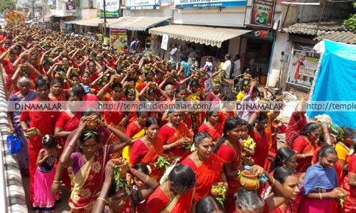 காரைக்கால்: காரைக்காலில் உலக நன்மை வேண்டி, ஆதிபராசக்தி வழிபாட்டு மன்றம் சார்பில் கஞ்சி கலய ஊர்வலம் நடைபெற்றது. காரைக்கால் மாவட்ட மேல்மருவத்துார் ஆதிபராசக்தி வழிபாட்டு மன்றம் சார்பில், உலக அமைதிக்காகவும், இயற்கை சீற்றங்கள் தணியவும், பஞ்சபூதங்கள் நல்ல பலன்களை தரவும், மேட்டூர் அணை நிறையவும், விவசாயம் செழிக்கவும், மழைவளம் வேண்டியும், ஆயிரத்துக்கும் மேற்பட்ட பெண்கள் நேற்று முளைப்பாலிகை, தீச்சட்டி, கஞ்சி கலயம் எந்தி ஊர்வலமாக சென்றனர். ஊர்வலம் அம்மையார் மணி மண்டபத்திலிருந்து துவங்கி பாரதியார் சாலை, பி.கே. சாலை உள்ளிட்ட முக்கிய வீதிகள் வழியாக, ஆதிபராசக்தி வழிபாட்டு மன்றத்திற்கு வந்தடைந்தது. ஏற்பாடுகளை ஆதிபராசக்தி வழிபாட்டு மன்றத்தினர் செய்திருந்தனர்.