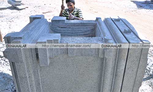 கோயிலில் ஞானாம்பிகை, காளகத்தீஸ்வரர், பத்மகிரீஸ்வர், அபிராமி அம்மன் ஆகிய 4 மகா சன்னதிகள் அமைக்கப்படுகின்றன. இவற்றில் முழுக்கால் வேலைப்பாட்டில் சிற்பங்கள் செதுக்கப்பட்டு வருகின்றன. காளகத்தீஸ்வரர், பத்மகிரீஸ்வர் சன்னதிகளுக்கு இடையே சண்டிகேஸ்வரர் சன்னதி அமைக்கப்பட உள்ளது. இதற்காக 4 டன்னுள்ள ஒரே கல்லில் சன்னதி அமைக்கும் பணியில் ஸ்தபதிகள் ஈடுபட்டுள்ளனர். இப்பணி 4 மாதங்களாக நடக்கிறது. இந்த சன்னதி தலா 3 அடியில் உயரம், அகலம், 2.5 அடி ஆழத்தில் அமைக்கப்படுகிறது. ஸ்தபதி பாஸ்கரன் கூறியதாவது: சிவன் கோயிலுக்கு வரும் பக்தர்கள் அனைத்து தெய்வங்களையும் வழிபட்ட பின், கடைசியாக சண்டிகேஸ்வரரை தரிசனம் செய்வர். அப்போது சிவன் கோயிலில் இருந்து எந்த பொருளையும் எடுத்து செல்லவில்லை என்பதை குறிக்க வெறுங்கையை தட்டிவிட்டு செல்வர். இந்த சண்டிகேஸ்வரருக்கு எந்த சிவ ஆலயத்திலும் ஒரே கல்லில் சன்னதி இல்லை. சன்னதியின் உபபீடம் (கீழ் பகுதி) முதல் பிரஸ்தரம் ( மேல் பகுதி) வரை ஒரே கல்லில் அமைவது இதுவே முதல் முறை, என்றார்.