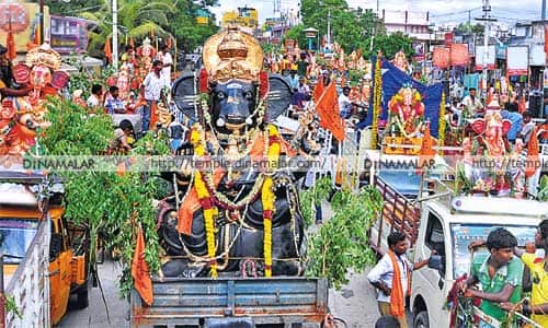 சிவசேனா திண்டுக்கல் மாவட்ட தலைவர் அசோக்பாபு, செயலாளர் கனிவளவன், இளைஞரணி தலைவர் ஸ்ரீதர் பங்கேற்றனர். எஸ்.பி., சரவணன் தலைமையில் போலீசார் பாதுகாப்பு பணியில் ஈடுபட்டனர். முஸ்லிம்கள் வரவேற்பு: சிவசேனா சார்பில் பஸ் ஸ்டாண்ட், காந்திமார்க்கெட் அருகே விநாயகர்சிலை ஊர்வலம் வரும்போது, பழநி மதனிசா முஸ்லிம் தர்மபரிபாலன சங்க முன்னாள் செயலாளர் சாகுல்அமீது குழுவினர் சிவசேனா நிர்வாகிகளுக்கு சால்வை அணிவித்தனர். இதேபோல அவர்களுக்கும் சிவசேனா சார்பில் சால்வை அணிவிக்கப்பட்டது. வடமதுரை: இந்து மக்கள் கட்சி சார்பில் நடந்த ஊர்வலம் அய்யலுõரில் துவங்கி திண்டுக்கல் கோட்டை குளம் வரை சென்றது. ஏற்பாட்டினை மாவட்ட செயலாளர் சதீஸ், ஒன்றிய செயலாளர் பூமிநாதன், இளைஞரணி செயலாளர் நாகராஜ்,வடமதுரை நகர செயலாளர் சக்திவேல் செய்திருந்தனர். வேடசந்துõர்: இந்து முன்னணி சார்பில், ஆண்கள் மேல்நிலை பள்ளி முன்பு துவங்கிய ஊர்வலம் அழகாபுரி அணை பகுதியில் கரைக்கப்பட்டன. செயற்குழு உறுப்பினர் மாரிமுத்து தலைமை வகித்தார். ஒருங்கிணைப்பாளர் ராமச்சந்திரன், செயற்குழு உறுப்பினர் அ#யப்பன் முன்னிலை வகித்தனர். ஒன்றிய செயலாளர் பால்பாண்டி, ஒன்றிய பொது செயலாளர் செல்வக்குமார் பங்கேற்றனர்.