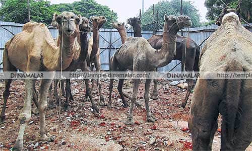 சென்னை: பக்ரீத் பண்டிகையை முன்னிட்டு, குர்பானிக்காக, ஒட்டகங்கள் சென்னைக்கு கொண்டு வரப்பட்டுள்ளன. இஸ்லாமியரின் முக்கிய பண்டிகைகளில் ஒன்றான பக்ரீத், வரும், ௨௪ம் தேதி கொண்டாடப்படுகிறது.பக்ரீத்தில், இறைச்சியை அனைவருக்கும் பங்கிட்டு கொடுக்கும் சடங்கு கடைபிடிக்கப்படும். அந்த சடங்கிற்கு, குர்பானி என்று பெயர். இஸ்லாமியர்களில் வசதி படைத்தோர், ஒட்டகங்களை வாங்கி, இறைச்சியாக்கி அவற்றை, ஏழைகளுக்கு தானமாக கொடுத்து வருகின்றனர். அதை முன்னிட்டு, ராஜஸ்தான் மாநிலத்தில் இருந்து ஒட்டகங்கள், ஆந்திர மாநிலம் கடப்பா வழியாக, சென்னைக்கு கொண்டு வரப்பட்டு உள்ளன. ஒரு ஒட்டகத்தின் விலை, 55 ஆயிரம் ரூபாய். ஏழு பேர் சேர்ந்து ஒரு ஒட்டகத்தை வாங்கி பங்கிடுவர்.
