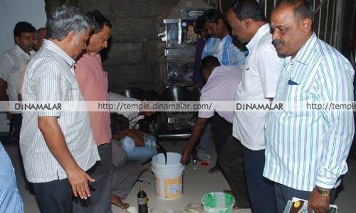 திருவண்ணாமலை: அருணாச்சலேஸ்வரர் கோவிலில் கும்பாபிஷேக திருபணிகள் நடந்து வருகிறது. இதில் கோபுரங்களில் பழமை மாறாமல் உள்ள மரபொருள்களை பாதுகாக்கவும் மற்றும் கோபுரத்தில் உள்ள செடிகளை அகற்றவும் மூலிகை ரசாயன மருத்து தயாரிக்கும் முறை குறித்து ஹிந்து சமய அறநிலையத்துறை தொல்லியல்துறை நிபுணர் டாக்டர் பாலசுப்பிரமணியன் செயல் முறை விளக்கம் நடத்தினார். உடன் கோவில் இணை ஆணையர் செந்தில்வேலன் உள்பட பலர் கலந்து கொண்டனர்.
