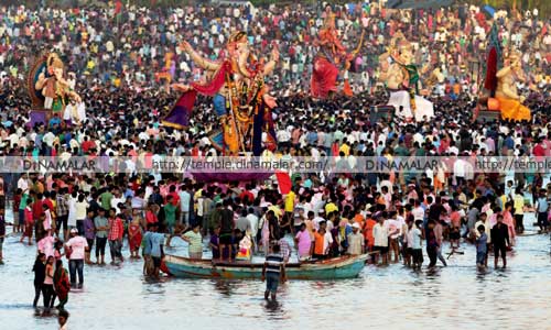 மும்பை: மகாராஷ்டிர மாநில தலைநகர் மும்பையில், கடற்கரை மற்றும் ஏரிப்பகுதிகளில், 50 ஆயிரம் விநாயகர் சிலைகள் கரைக்கப்பட்டன. கோலாகலமாக அரங்கேறிய இந்த நிகழ்ச்சியில், லட்சக்கணக்கான பக்தர்கள் உற்சாகமாக கலந்து கொண்டனர். பத்து நாள் பண்டிகைமகாராஷ்டிராவில், பா.ஜ.,வைச் சேர்ந்த, முதல்வர் தேவேந்திர பட்நாவிஸ் தலைமையிலான ஆட்சி நடக்கிறது. இங்கு, 17ம் தேதி, விநாயகர் சதுர்த்தி பண்டிகை விமரிசையாக கொண்டாடப்பட்டது. இதை தொடர்ந்து, விநாயகர் சிலைகளை கரைக்கும் நிகழ்ச்சிகள் நடந்து வருகின்றன. கடந்த, 27ம் தேதி அதிகாலை முதல், மும்பை நகரின் பல்வேறு பகுதிகளில், விநாயகர் சிலைகள் ஊர்வலமாக எடுத்துச் செல்லப்பட்டன. கிர்காம் சவ்பட்டி, ஜுகு கடற்கரை, போவாய் ஏரி உள்ளிட்ட, பலவகை நீர்நிலைகளில், 50 ஆயிரத்திற்கும் மேற்பட்ட சிலைகள் கரைக்கப்பட்டன. பாதுகாப்பு பணிகள்இந்நிகழ்ச்சியில், லட்சக்கணக்கான பக்தர்கள், பக்திப் பரவசத்துடன் கலந்து கொண்டனர். சிலை கரைப்பு நிகழ்ச்சிக்கு, மும்பை மாநகரம் முழுவதும், பலத்த பாதுகாப்பு ஏற்பாடுகளை, போலீசார் செய்திருந்தனர். 45 ஆயிரம் வீரர்கள் பாதுகாப்பு பணியில் ஈடுபட்டனர்.
