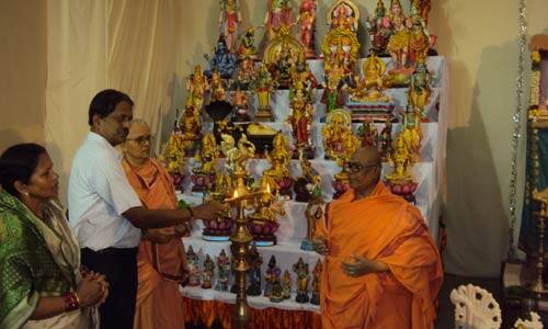 புதுச்சேரி ஜிப்மர் மருத்துவமனை இயக்குநர் டாக்டர் சுபாஷ்சந்திர பரிஜா, ஜோதிர்மயி பரிஜா ஆகியோர், கொலு கண்காட்சியினை திறந்து வைத்து, குத்து விளக்கேற்றினர்.