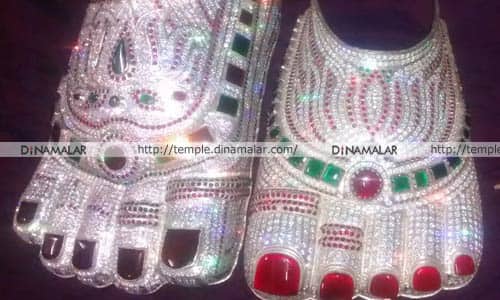திருக்கோவிலுார்: திருக்கோவிலுார், உலகளந்த பெருமாள் மூலவர் திருவிக்ரமனுக்கு, 3.5 கிலோ வெள்ளியால் உருவாக்கப்பட்டுள்ள திருப்பாதம் அணிவிக்கப்படுகிறது. விழுப்புரம் மாவட்டம், திருக்கோவிலுாரில், உலகளந்த பெருமாள் மூலவர் திருவிக்ரமனாக பக்தர்களுக்கு சேவை சாதிக்கிறார். பஞ்சவர்ண திருமேனியால் ஆன பெருமாளுக்கு, மேலும் மெருகுசேர்க்கும் வகையில், பக்தர் ஒருவர் 3.5 கிலோ வெள்ளியில் உருவான, கற்கள் பதிக்கப்பட்ட திருப்பாதத்தை காணிக்கையாக வழங்கியுள்ளார். மகாபலி சக்ரவர்த்தியின் ஆணவத்தை அடக்க பகவான் மூன்றடி மண் கேட்டு, ஒரு அடி பூமியையும், மற்றொரு அடி ஆகாயத்தையும் அளந்துவிட்டு, மற்றொரு அடியை எங்கே வைப்பது என கேட்க, கர்வத்தை உணர்ந்த மகாபலி தனது தலையை குனிந்து வணங்கினார் என்பது ஐதீகம். இதன்படி, மூலவர் திருவிக்ரமன் ஒரு காலை மேலே துாக்கியவாறும், மற்றொரு காலை தரையில் வைத்தவாறு திருவிக்ரமனாக அருள் பாலிக்கிறார். இரண்டு பாதங்களுக்கும் பொருந்தும் வகையில் பக்தரால் வழங்கப்பட்டுள்ள கற்கள் பதித்த வெள்ளி திருப்பாதத்தை, நாளை காலை, சிறப்பு பூஜைகளுக்கு பின், சுவாமிக்கு அணிவிக்கப்படுகிறது. ஜீயர் ஸ்ரீநிவாச ராமானுஜாச்சாரிய சுவாமிகள் உத்தரவின் பேரில், இவ்வைபவ ஏற்பாடுகள் செய்யப்பட்டுள்ளது.