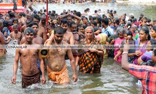 திருச்சி: ஐப்பசி மாதத்தில் காவிரியில் நீராடுவது கங்கையில் நீராடுவதற்கு இணையானது என, நம்பிக்கை உள்ளது. ஐப்பசி முதல் நாளன்று, திருச்சி மாவட்டம், திருப்பராய்த்துறையிலும்; இரண்டாவது வாரத்தில் கும்பகோணத்திலும்; ஐப்பசி கடைசி நாளில் மயிலாடுதுறையிலும், பக்தர்கள் காவிரியில் புனித நீராடுவர்.ஐப்பசி முதல் நாளான நேற்று, திருப்பராய்த்துறை காவிரி ஆற்றில், பசும்பொன் மயிலாம்பிகை- தாருகவனேஸ்வரர் தீர்த்தவாரிக்கு எழுந்தருளினார். அப்போது பக்தர்கள் புனித நீராடி வழிபட்டனர்.