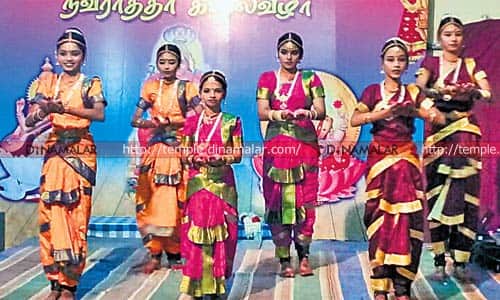 விழாவையொட்டி, ஆண்டுதோறும் கோவில்களில் சிறப்பு பூஜைகளும், வீடுகளில் கொலு வைத்து வழிபாடும் நடக்கிறது. இந்தாண்டும் நவராத்திரி விழாவையொட்டி, கோவில்களிலும், வீடுகளிலும் கொலு வைக்கப்பட்டு, விழா சிறப்பாக கொண்டாடப்பட்டு வருகிறது. விழாவையொட்டி, கோவில்களில், பக்தர்களை கவரும் வகையில், சொற்பொழிவு, பரதநாட்டியம் உள்ளிட்ட பல்வேறு கலை நிகழ்ச்சிகளும் நடத்தப்படுகின்றன. அதில், கன்னிகா பரமேஸ்வரி அம்மன் கோவிலுக்குட்பட்ட வாசவி மண்டபத்தில், பொள்ளாச்சி நவரச நாட்டியாலயா கீதா பிரகாஷ் மாணவர்கள் பரதநாட்டிய விழா மிகவும் கவரும் வகையில் அமைந்திருந்தது.அதில், மகிஷாசூர மர்த்தினி நடனம் அனைவரையும் கவரும் வகையில் அமைந்தது. அரக்கனை வம்சம் செய்யும் விதம் பரத நாட்டியம் மூலம் வெளிப்படுத்திய விதம் பாராட்டும் வகையில் அமைந்திருந்தது. பொள்ளாச்சி மாரியம்மன் கோவிலிலும், நவராத்திரியையொட்டி சிறப்பு நிகழ்ச்சிகள் நடத்தப்படுகின்றன.