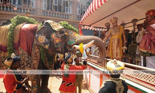 மைசூரு: மைசூரு அம்பாவிலாஸ் அரண்மனையில், ஆயுத பூஜை நேற்று கொண்டாடப்பட்டது. யது வம்சத்தின், புதிய மன்னர் யதுவீர் கிருஷ்ணதத்த சாமராஜ உடையார், ஆர்வத்துடன் பூஜைகள் செய்ததை, ராணி பிரமோதா தேவி, அரச குடும்பத்தினர் கண்டுகளித்தனர். ஆயுத பூஜையை முன்னிட்டு, நேற்று அதிகாலை, 5:00 மணியில் இருந்து, அரண்மனையில் பல்வேறு ஆன்மிக நிகழ்ச்சிகள், பூஜைகள் நடந்தன. அரண்மனை வளாகத்தில் உள்ள திருமண மண்டபத்தில் சண்டி ஹோமம், கணபதி ஹோமம் உட்பட பல வகையான ஹோமங்களை, அரண்மனையின் தலைமை அர்ச்சகர் நடத்தி வைத்தார். அம்பாவிலாஸ் அரண்மனை வளாகத்திலேயே உள்ள கோடி சோமேஸ்வரர் கோவிலில், யதுவீர் சிறப்பு பூஜைகள் செய்தார். அரண்மனையின் பட்டத்து யானை, குதிரை மற்றும் பசுவுக்கும் மலர் துாவி, பூஜைகள் செய்தார். இதே வேளையில், தசரா உற்சவத்தின் முக்கிய அம்சமான ஜம்பு சவாரியில் கலந்து கொண்டு, தங்க அம்பாரியை சுமக்கும் அர்ஜுனா உட்பட, 12 யானைகளுக்கும், வனத்துறை அதிகாரிகள் பூஜை செய்தனர். யானைகளுக்கு வெல்லம், கரும்பு, தேங்காய், வாழைப்பழங்கள் வழங்கப்பட்டன.அரண்மனையில், அரசர்கள் போருக்கு பயன்படுத்திய வாள்கள், கேடயங்கள், பீரங்கிகள், ஈட்டிகள் உட்பட அனைத்து ஆயுதங்களுக்கும், சிறப்பு பூஜை செய்யப்பட்டது. ராணி பிரமோதா தேவி, யதுவீரின் வருங்கால மனைவி திரிஷிகா குமாரி உட்பட குடும்பத்தினர், மாடவீதியில் நின்று பார்த்தனர். நேற்று மாலையும், அரண்மனையில் பல வகையான ஆன்மிக, கலாசார நிகழ்ச்சிகள் நடந்தன. வறட்சி, விவசாயிகள் தற்கொலையை காரணம் காட்டி, அரசு இம்முறை தசரா திருவிழாவை எளிமையாக கொண்டாடினாலும், அரச குடும்பத்தினர் வழக்கம் போல், சிறப்பாகவே கொண்டாடினர். சம்பிரதாயப்படி செய்ய வேண்டிய அனைத்து பூஜை, புனஸ்காரங்களை குறைவின்றி செய்தனர்.