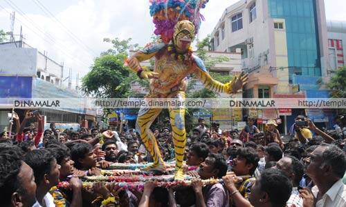 விருதுநகர்: விருதுநகரில் மகர நோன்பை முன்னிட்டு சிவபெருமானுக்கு வாலிபர்கள் புலி வேடமிட்டு நேர்த்தி கடன் செலுத்தினர். மகர நோன்பை முன்னிட்டு சிவபெருமான், சந்திரசேகர் கோலத்தில் எழுந்தருளி, மக்களுக்கு கெடுதலை விளைவிக்கும் வன்னிய அசூரனை அம்பு எய்து கொன்றதாக ஐதீகம். இதற்கு மக்கள் புலி வேடமிட்டு நன்றி செலுத்துவதாக கூறப்படுகிறது. அம்புவிடுதல் நிகழ்ச்சி:நேற்று மகர நோன்பை முன்னிட்டு விருதுநகர் சொக்கநாதர் சுவாமி சந்திரசேகர் கோலத்தில் குதிரை வாகனத்தில் எழுந்தருளி கோயில் நந்தவனத்தில் அம்பு விடுதல் நிகழ்ச்சி நடந்தது. அம்புகளை பிடித்தால் பாவங்கள் நீங்கும் என்று நம்பப்படுவதால் பக்தர்கள் போட்டி போட்டு அம்பை பிடித்தனர். பின் மக்கள் வளமுடன் வாழ்வதற்காக பல்வேறு சமுதாய வாலிபர்கள் நேர்த்தி கடனுக்காக புலி வேடமிட்டு நகரின் முக்கிய பகுதிகளில் ஊர்வலமாக நந்தவனம் வந்தடைந்தனர். மாலையில் ஒரு சமுதாய இளைஞர்களுக்கு பெண் பார்க்கும் நிகழ்ச்சியும் நடந்தது.