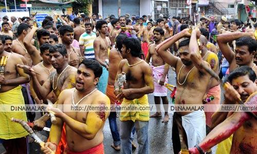கோவை: விஜயதசமி விழாவையொட்டி, கோவையில் நடந்த கத்தி போடும் திருவிழாவில், ஆயிரக்கணக்கான பக்தர்கள், ரத்தம் சொட்ட, சொட்ட கத்தி போட்டு அம்மனுக்கு நேர்த்திக்கடன் செலுத்தினர். கோவையிலுள்ள குறிப்பிட்ட சமுதாயத்தை சேர்ந்த மக்கள், நவராத்திரி விழாக்காலத்தின் முதல் நாளிலிருந்து, விரதம் இருக்க துவங்குகின்றனர். பத்தாம் நாளான விஜயதசமி திருநாளில், கத்தி போட்டு நேர்த்தி கடன் செலுத்துகின்றனர். சாய்பாபா காலனி அழகேசன் ரோடு வினாயகர் கோவிலில் பூஜிக்கப்பட்ட கலசத்துடன் துவங்கிய பக்தர்கள் ஊர்வலம், ரங்கே கவுடர் வீதியிலுள்ள புதுசவுடம்மன் கோவிலை அடைந்தது. இதே போல், பூமார்க்கெட் செல்வ வினாயகர் கோவிலில் துவங்கிய பக்தர்கள் ஊர்வலம், பழைய சவுடம்மன் கோவிலை வந்தடைந்தது. ஊர்வலத்தில் பங்கேற்ற, ஆயிரக்கணக்கான பக்தர்கள் இரு கைகளிலும் கத்தியால் கீறி, ரத்தம் சொட்ட, சொட்ட அம்மனுக்கு நேர்த்திக்கடன் செலுத்தினர். கத்தி போடும் வேண்டுதல் குறித்து பக்தர் ஒருவர் கூறுகையில், ஒருமுறை அம்மனை ஆடிப்பாடி, துதித்து அழைத்து வரும்போது, சலங்கை ஒலி சப்தத்துக்கு ஏற்ப முன்னேறி செல்ல வேண்டும்; திரும்பி பார்க்கக்கூடாது என்று அம்மன் கட்டளையிட்டிருந்தார். சலங்கை சப்தம் கேட்காததால் பக்தர்கள் திரும்பி பார்த்தனர். கோபமடைந்த அம்மனிடம் மன்னிப்பு கோர, ஆண்டுதோறும் நவராத்திரி நாளில் விரதமிருந்து, விஜயதசமி நாளில் கத்தி போட்டு, ரத்தம் சொட்ட, சொட்ட நேர்த்திக்கடன் செலுத்துகிறோம் என்றார்.