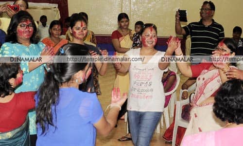 கோவையில் வடமாநில இளம்பெண்கள், முகத்தில் சிவப்பு வண்ணச்சாயங்களை பூசி, தாண்டியா நடனமாடி தசரா விழா கொண்டாடினர். நவராத்திரி ஒன்பது நாட்கள் முடிந்து, பத்தாம் நாளில் தசாரா விழா வெகு விமரிசையாக கொண்டாடப்படுகிறது. கோவை பீளமேடு சுகுணா திருமண மண்டபத்திலும், ராம்நகர் எஸ்.கே.வி.கே. ஹாலிலும் தசரா விழா நடந்தது. அங்கு வடமாநில கைவினைக் கலைஞர்களால் உருவாக்கப்பட்டிருந்த பிரமாண்ட காளி தேவி சிலை வண்ண மலர்களால் அலங்கரிக்கப்பட்டிருந்தது. காளிக்கு பிடித்த, இனிப்பு, கார வகை பதார்த்தங்கள், பல வகையான உணவுகள் படைக்கப்பட்டன. காலை மற்றும் மாலை இரவு என்று மூன்று நேரங்களிலும் சிறப்பு பூஜைகள் நடந்தன. ஒன்பது நாட்கள் நவராத்திரி நிறைவடைந்து, 10ம் நாளான நேற்று, தர்பா என்றழைக்கப்படும் தாண்டியா நடனம் நடந்தது. இளம்பெண்கள் கைகோர்த்து நடனமாடினர். அதற்கேற்ப இசை இசைக்கப்பட்டது. இதில் ஏராளமான பெண்கள் பங்கேற்றனர். குஜராத்தியர், மராத்தியர், வங்காளிகள் உட்பட வடமாநிலங்களை சேர்ந்த மக்கள் விழாவில் பங்கேற்றனர். மக்கள் சிவப்பு வண்ணத்தை ஒருவருக்கொருவர் பூசி மகிழ்ந்தனர். பின், துர்க்கை சிலையை ஊர்வலமாக எடுத்து சென்று, குளங்களில் கரைத்தனர். ஜெயின் மதத்தை சேர்ந்தவர்கள் மட்டும், நவராத்திரி விழா நாட்களில் தொடர் விரதம் மேற்கொண்டு, சர்க்கரை, உப்பு, துவர்ப்பு, நெய், எண்ணெய், காரம் இல்லாத உணவை ஒரு நேரம் மட்டும் உட்கொண்டு உபவாசம் இருந்தனர். ஒன்பது நாட்கள் விரதத்தை நிறைவு செய்து, பத்தாம் நாளான நேற்று தசரா விழாவை கொண்டாடினர்.