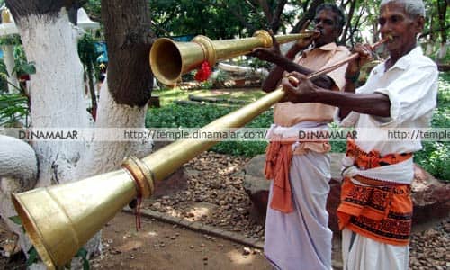 முந்தைய காலத்தில், மன்னர்கள் வீதிகளில் உலா வரும் போது, அவர்களின் வருகையை மக்களுக்கு அறிவிக்கவே, இதை முதலில் ஊதிக் கொண்டு செல்வர். கோவில்களில் சுவாமி திருவீதி உலா செல்லும்போது, முன்பாக ஊதிச் சென்றனர். கோவில் விழாக்களில், அதிக வாய்ப்பு கிடைத்ததால், இதன் வருவாயை வைத்து, குடும்பம் நடத்த முடிந்தது. தற்போது, ஆண்டுக்கு, 10 திருவிழாவுக்கு செல்வதே அதிகம். ஒரு சில கோவில்களில் மட்டுமே, 500, 1000 ரூபாய் என, கூலி கொடுப்பர். மீதமுள்ள கோவில்களில், 250, 300 ரூபாய் தான் கூலியாக கிடைக்கும். இதை வைத்து, குடும்பத் தேவையை பூர்த்தி செய்யாததால், விவசாயக் கூலி வேலைக்கு செல்கிறோம். அதனால், எங்களுடைய குழந்தைகள் இத்தொழிலை செய்ய முன் வரவில்லை. தமிழகம் முழுவதும், அதிகபட்சமாக, 12 பேர் தான் தற்போது இத்தொழிலில் உள்ளனர். இதே நிலை நீடித்தால், இன்னும், 10 ஆண்டுகளில், இந்த இசைக்கருவியை இசைக்க ஆட்கள் இருக்க மாட்டார்கள். இசையும், கலையும் அழிந்து விடும். எனவே, தமிழக அரசு கோவில்களில், இந்த இசையை இசைக்க அனுமதி அளித்தால் மட்டுமே, அழிவிலிருந்து காப்பாற்ற முடியும். இவ்வாறு, அவர்கள் தெரிவித்தனர்.