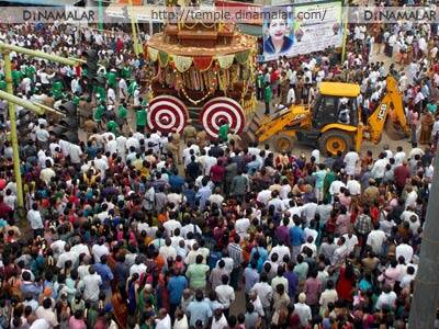 கடந்த, 2010ம் ஆண்டு ஜூலை மாதம்,16ம் தேதி ஆழித்தேரோட்டம் நடந்தது. அதன்பின்,அதே ஆண்டு அக்டோபர் மாதம், தியாகராஜசுவாமி கோவில் திருப்பணி முகூர்த்தம் நடந்தது. திருப்பணி துவங்கியதை அடுத்து, 2011ம் ஆண்டு முதல், ஆழித்தேரோட்டம் நடைபெற வில்லை. தியாகராஜசுவாமி கோவில் திருப்பணியுடன்,2.18 கோடி ரூபாய் செலவில், ஆழித்தேர்,சுப்ரமணியர் தேர் புதுப்பிக்கும் பணியும் துவங்கின. பணிகள் முடிந்து, 2015,அக்.,26ல், ஆழித்தேர், சுப்ரமணியர் தேர் வெள்ளோட்டம் நடைபெறும் என, அறிவிக்கப்பட்டது. அதன்படி,ஆழித்தேர் வெள்ளோட்டத்தை ஒட்டி, 25ம்தேதி காலை,7:00 மணிக்கு அனுக்ஞை,விக்னேஸ்வர பூஜை,மஹா கணபதி ேஹாமம், வாஸ்துசாந்தி போன்ற பூஜைகள் நடைபெற்றன.நேற்று காலை,6:00 மணிக்கு இரண்டாம் கால யாகம், 9:00 மணிக்கு பூர்ணாஹூதி தீபாராதனை, 9:15 மணிக்கு ஆழித்தேர் பிரதிஷ்டை நடைபெற்றது.