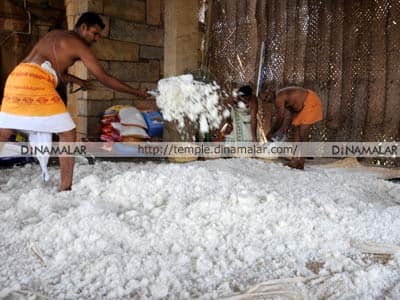 அரியலுார் மாவட்டம் ஜெயங்கொண்டம் அருகே உள்ள கங்கைகொண்டசோழபுரம் கிராமத்தில் ஆயிரம் ஆண்டுகளுக்கு முன் ராஜராஜசோழன் மகன் ராஜேந்திரசோழனால் தனது ஆட்சி காலத்தில் (கி.பி. 1012-1044) கட்டப்பட்ட பிரகதீஸ்வரர் கோயில் உள்ளது. இக்கோயிலில் பிரதிஷ்டை செய்யப்பட்டுள்ள சிவலிங்கம் 60 அடி சுற்றளவும், பதிமூன்றரை அடி உயரமும் கொண்டது. இங்கு ஆண்டுதோறும் ஐப்பசி பௌர்ணமி அன்று அன்னாபிஷேகம் நடைபெறுவது வழக்கம். இந்தாண்டுக்கான அன்னாபிஷேம் சிறப்பாக நடந்தது. விழாவையொட்டி கடந்த 25ம் தேதி காலை 9 மணி முதல் 12 மணி வரை கணபதி ேஹாமம், அருள்மிகு கணக்க விநாயகருக்கு மகா அபிஷேகம், தீபாராதனை, 26ம் தேதி 9 மணிக்கு அருள்மிகு பிரகதீஸ்வரருக்கு ருத்ரேேஹாமம், மகா அபிஷேகமும், தீபாராதனையும் நடந்தது. விழாவின் மு்க்கிய நிகழ்வாக 3,500 கிலோ பச்சரிசியால் சாதம் சமைத்து காலை 11 மணி முதல் மாலை 4 மணி வரை அருள்மிகு பிரகதீஸ்வரருக்கு அன்னாபிஷேகமும், 5.50 மணியளவில் மகா தீபாராதனையும் நடந்தது.லிங்கத்தின்மேல் சாத்தப்படும் ஒவ்வொரு சாதமும் லிங்கத்தின் தன்மையை பெறுகிறது. இதனால் ஒரே நேரத்தில் கோடிக்கணக்கான சிவலிங்கத்தை தரிசிக்கும் புண்ணியம் கிடைக்கும் என்பது ஐதீகம். இதில் 156 சிவாச்சாரியர்கள் கலந்து கொண்டு சாதம் சமைத்து அன்னாபிஷேகம் செய்தனர் என்றார்.