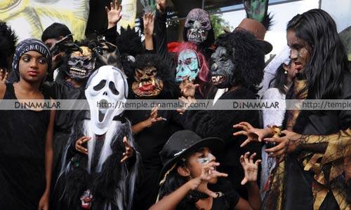 அமெரிக்கா, பிரிட்டன் போன்ற நாடுகளில், ஆவிகள் தினம் பரவசமாக அனுசரிக்கப்படுகிறது. தமிழகத்தில் அறுவடை தினத்தை தைப்பொங்கலாக கொண்டாடுவதைப்போன்று, அறுவடை தினத்தை ஆவிகள் தினமாக அனுசரித்தனர். சிலர், இந்த தினத்தில் ஆவிகளுக்கும் நமக்கும் இடையே உள்ள ஒரு சுவர் உடைக்கப்பட்டு, வெளிச்சம் ஏற்படுவதாக கருதுகின்றனர். ஆவிகள் தினத்தில் பல்வேறு உருவங்களில் உடைகள் அணிந்து, பரவசப்படுத்துகின்றனர். இவை வண்ண உடைகளாக இல்லாமல், கருப்பு வெள்ளையாக இருக்கும். இந்த ஆவிகள் தினம் பற்றி பள்ளிகள் குழந்தைகள் அறிவதற்காக, கோவை சிட்ராவில் உள்ள பார்க் குளோபல் பள்ளியில், ஹாலோவின் டே நாள் நேற்று அனுசரிக்கப்பட்டது. சிறு குழந்தைகள் முதல் பெரியவர்கள் வரை கருப்பு உடையில், முகமூடிகளை அணிந்து மகிழ்வோடு கொண்டாடினர். சிறு குழந்தைகள் ஆவிகளின் பயத்தை போக்கும் விதமாகவும், இந்த நாளை அனுசரிக்கின்றனர். பேய்கள் மாயை என்ற உணர்வை, குழந்தைகளுக்கு இது உணர்த்து வதாக இருந்தது.
