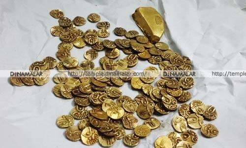 திருவாரூர்: திருவாரூர் அருகே, விவசாய நிலத்தில் கண்டெடுத்த தங்க காசு மற்றும் 22 கிராம் தங்க தகடை வருவாய் துறை அதிகாரிகள் பறிமுதல் செய்தனர். திருவாரூர் அருகே, அம்மையப்பன் அடுத்த பாம்பாக்கை கிராமத்தில், திருவாரூரைச் சேர்ந்த ஒருவர் புதிதாக வீட்டு மனை அமைத்து, சாலை போடும் பணியை மேற்கொண்டுள்ளார். அப்பகுதியில், நேற்று முன்தினம், அதே ஊரைச் சேர்ந்த செல்லப்பா,70,என்பவர், மாடு மேய்த்தபோது, அங்கு, உடைந்த நிலையில் ஒரு மண் உண்டியலை கண்டெடுத்தார். அதிலிருந்த தங்க காசுகளை வீட்டிற்கு எடுத்து சென்றுவிட்டார். இதையறிந்த, அப்பகுதி கிராம நிர்வாக அலுவலர் அபிராமி, குடவாசல் தாசில்தாருக்கு தகவல் கொடுத்தார். தாசில்தார் சொக்கநாதன், கொரடாச்சேரி போலீசார் செல்லப்பாவிடம் விசாரித்ததில், மண் உண்டியலில் இருந்து தங்க காசுகள் எடுத்ததை ஒப்புக் கொண்டார். வருவாய் துறையினர், செல்லப்பாவிடம் இருந்து, 140 தங்க காசுகள், 22 கிராம் எடை கொண்ட தங்க தகடு ஆகியவற்றை கைப்பற்றினர். இதன் மதிப்பு ரூ.2.50 லட்சம் ஆகும். தங்க காசுகள் ஒவ்வொன்றும் அரை கிராம் எடை உடையவை. நேற்று, அப்பகுதியில் மேலும் தங்க காசுகள் புதைந்துள்ளதா என, வருவாய் துறையினர் பொக்லைன் இயந்திரம் மூலம் தோண்டி பார்த்தனர்; ஏதும் கிடைக்கவில்லை.