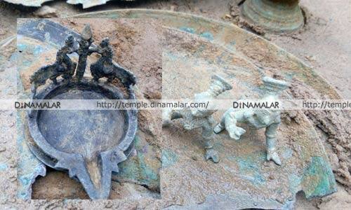 அரியலுார்: அரியலுார் அருகே, பழமையான பூஜை பொருட்கள் கண்டெடுக்கப்பட்டன. அரியலுார் மாவட்டம், முத்துசேர்வாமடம் கிராமத்தைச் சேர்ந்த அழகேசன், 22, நேற்று காலை, வயலுக்கு நடந்து சென்று கொண்டிருந்தார். அப்போது, பாதத்தில் ஏதோ ஒரு பொருள் குத்தியதைப் போன்று உணர்ந்ததும், அதை எடுக்க முயன்றார்; முடியவில்லை. பின், தோண்டி பார்த்ததில், பழமையான பூஜை பொருட்கள் புதைந்திருந்தது தெரிய வந்தது.கை விளக்கு - 2, தாம்பாளம் - 3, கெண்டி சொம்பு - 1, 200 கிராம் எடை உள்ள ஆண், பெண் சிலை - 1, தீப கரண்டி - 1, உடைந்த சிலைகள் - 2 மற்றும் ஊதுவத்தி ஸ்டாண்டு ஆகியவற்றை கண்டெடுத்து, வி.ஏ.ஓ., செல்வராஜிடம் ஒப்படைத்தார்.