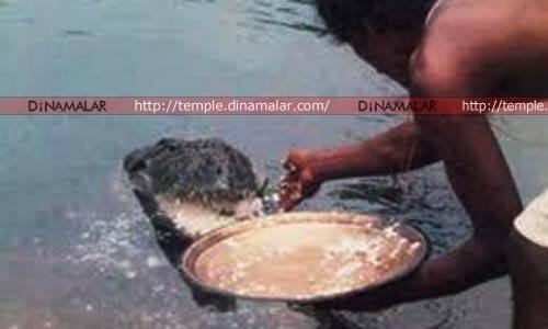 திருவனந்தபுரம், : இரைக்காக விலங்குகளையும், மனிதர்களையும் வேட்டையாடும் முதலைகளை கேள்விப்பட்டுள்ளோம். கேரள மாநிலத்தில், ஏரிக்கு நடுவில் அமைந்துள்ள கோவிலருகே வசிக்கும் முதலை ஒன்று, அங்கு வரும் பக்தர்கள் அளிக்கும் பிரசாதத்தை மட்டும் உண்டு உயிர் வாழ்கிறது. கேரளாவில், காங்., கட்சியின், முதல்வர், உம்மன்சாண்டி தலைமையிலான ஆட்சி நடக்கிறது. இங்கு, காசர்கோட்டில், ௨ ஏக்கர் பரப்பளவுள்ள ஏரிக்கு நடுவில், அனந்த பத்மநாப சுவாமி கோவில் இருக்கிறது. இந்த ஏரியில் வசிக்கும் ஒரு முதலையால், இந்த கோவில் பிரபலம். கோவிலில், பூஜை மணியோசை கேட்டவுடன், கோவிலுக்கு அருகில் இந்த முதலை வருகிறது. பூஜைக்கு பின், கோவில் பூசாரி மற்றும் பக்தர்கள் கொடுக்கும் பிரசாதத்தை உண்கிறது. இந்த முதலை, அசைவ உணவு எதையும் சாப்பிடுவதில்லை என்பது தான் ஆச்சர்யம்.
