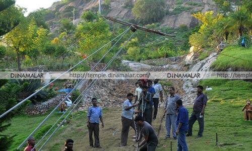 பழநி: பழநி மலைக்கோயில் ரோப்காரில் ராஞ்சியிலிருந்து வரவழைக்கப்பட்ட புதிய அயன்ரோப்(கம்பிவடக்கயிறு) பொருத்தப்பட்டு தீபாவளிக்கு இயக்கப்பட உள்ளது. திண்டுக்கல் மாவட்டம் பழநி மலைக்கோயிலுக்கு பக்தர்கள் மூன்று நிமிடத்தில் எளிதாக செல்லும் வகையில் நாள்தோறும் காலை 7 மணி முதல் இரவு 9 மணி வரை ரோப்கார் இயக்கப்படுகிறது. அக்.,31 முதல் புதிய கம்பிவடக் கயிறு, பராமரிப்பு பணிகளுக்காக நிறுத்தப்பட்டுள்ளது. தற்போது ராஞ்சியில் இருந்து ரூ.5.50 லட்சம் மதிப்புள்ள, 730 மீட்டர் நீளமுள்ள கம்பிவடக்கயிறு வரவழைக்கப்பட்டுள்ளது. அதனை கீழ்தளம், மேல்தள மோட்டார், பல்சக்கரங்கள், டவர்களில் பொருத்தும் பணி நடக்கிறது. பெட்டிகள், உருளைகள், பல்சக்கரங்களில் ஆயில், கிரீஸ் இட்டு தீபாவளி அல்லது கந்தசஷ்டி விழாவிற்குள் ரோப்கார் பக்தர்கள் பயன்பாட்டிற்கு வரஉள்ளது. கோயில் அதிகாரி ஒருவர் கூறுகையில்,“ புதிய கம்பி வடக்கயிறு பொருத்தும் பணி ரோப்கார் பாதுகாப்பு குழு ஆலோசனைப்படி, கொல்கத்தா நிறுவன பணியாளர்கள் மூலம் நடக்கிறது. மழை பெய்யாமல் இருந்தால் அனைத்து பணிகளையும் விரைந்து முடித்து நவ.,9ல் சோதனை ஓட்டம் நடத்தப்படும். அதில் பக்தர்களின் பாதுகாப்பான பயணம் உறுதிசெய்யப்பட்டு தீபாவளிக்கு ரோப்காரை இயக்க திட்டமிட்டு உள்ளோம் ,” என்றார்.