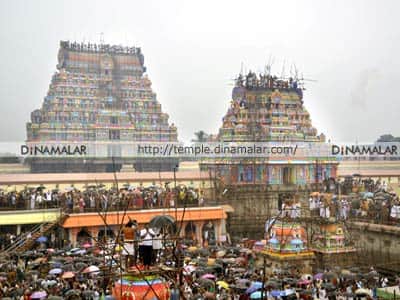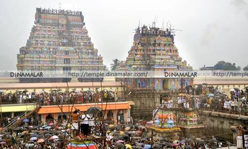 பிரசித்தி பெற்ற, திருவாரூர் தியாகராஜர் கோவிலுக்கு, தமிழக அரசின் சார்பில், 3.18 கோடி ரூபாய்; பக்தர்கள் சார்பில், 2 கோடி ரூபாய், திருப்பணிக்காக வழங்கப்பட்டது. திருப்பணிகள் முடிந்து நேற்று கும்பாபிஷேகம் நடந்தது. கமலாம்பாள் சன்னிதி எதிரில், பிரம்மாண்ட யாகசாலையில், 125 குண்டங்கள் அமைக்கப்பட்டு, இருந்தன. நேற்று அதிகாலை, பரிவார மூர்த்திகளுக்கு கும்பாபிஷேகம், 80 உப சன்னிதிகளில் உள்ள, 198 கும்பங்களுக்கு கும்பாபிஷேகம் நடைபெற்றது.பின், காலை, 9:30 மணிக்கு தியாகராஜர், கமலாம்பாள் உட்பட ஐந்து சன்னிதிகள் மற்றும் ஒன்பது கோபுரங்களின் கலசங்களில் புனித நீர் ஊற்றி, கும்பாபிஷேகம் நடைபெற்றது. இந்து அறநிலையத் துறை அமைச்சர் காமராஜ், அறநிலையத் துறை ஆணையர் வீர சண்முகமணி, உட்பட பலர் பங்கேற்றனர். ஆயிரக்கணக்கான பக்தர்கள், கொட்டும் மழையில் கும்பாபிஷேக விழாவில் பங்கேற்றனர்.