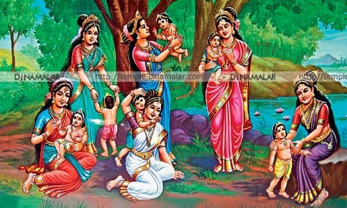 அசுரர்களின் இந்தக் கொடுமையைத் தாங்க முடியாத தேவர்கள், கயிலாயம் சென்று சிவபெருமானிடம் சூரபத்மனிடம் இருந்து தங்களைக் காக்கும்படி முறையிட்டனர். சிவனும் அவர்களைக் காப்பாற்றும் நோக்குடன் பார்வதியின் தொடர்பின்றி, தனது ஆறு நெற்றிக் கண்களைத் திறக்க (சிவனுக்கு ஈசானம், தத்புருஷம், அகோரம், வாமதேவம், சத்யோஜாதம், ஞானிகளுக்கு மட்டும் தெரியக்கூடிய அதோ முகம் (மனம்) என்று ஆறுமுகங்கள் உண்டு) அவற்றிலிருந்து தோன்றிய ஆறு தீப்பொறிகளையும் வாயு பகவான் ஏந்திச் சென்று சரவணப் பொய்கையில் மலர்ந்திருந்த தாமரை மலர்கள் மீது சேர்த்தான். அந்த தீப்பொறிகள் ஆறும் ஆறு குழந்தைகளாகத் தோன்றின! அந்த ஆறு குழந்தைகளையும் ஆறு கார்த்திகைப் பெண்கள் அறுவர் பாலூட்டி சீராட்டி வளர்த்தனர். இந்த ஆறு திருமுகங்களும் ஞானம், ஐஸ்வர்யம், அழகு, வீரியம், வைராக்கியம், புகழ் எனும் ஆறு குணங்களைக் குறிக்கிறது. பிரணவ சொரூபியான முருகனிடம் காக்கும் கடவுள் முகுந்தன், அழிக்கும் கடவுள் ருத்ரன், படைக்கும் கடவுள் கமலோற்பவன் ஆகிய மும்மூர்த்திகளும் அடங்குவர். மேலும் முருகப் பெருமான் சிவாக்னியில் தோன்றியவராதலால் ஆறுமுகமே சிவம்-சிவமே ஆறுமுகம் என்பதுண்டு. அந்த ஆறு குழந்தைகளையும் பார்வதி கட்டி அணைக்க... அவர்கள் ஒரு மேனியாக வடிவம் கொண்டு ஆறு முகங்களும் இரு கரங்களும் கொண்ட முருகப் பெருமானாகத் தோன்றினர். இத் திருவுருவைப் பெற்றதால் ஆறுமுகசுவாமி என்ற பெயர் முருகப் பெருமானுக்கு ஏற்பட்டது. அத்துடன் இந்த ஆறு குழந்தைகளையும் பார்வதி ஒரே குழந்தையாக ஸ்கந்தம் (சேர்த்தல்) செய்ததால் முருகன் ஸ்கந்தப்பெருமான் ஆனார். முருகன் என்றால் அழகன். கோடி மன்மதர்களை விட அழகாக இருந்தான் அவன்.முருகப்பெருமான் தேவகுரு பிரகஸ்பதி மூலம் அசுரர்களின் வரலாற்றினை அறிந்தார். திருக்கரத்தில் வேலேந்திக் கொண்டு முருகப்பெருமான், இந்திராதி தேவர்களே! நீங்கள் அசுரர்களுக்குச் சிறிதும் அஞ்சத்தேவையில்லை. அஞ்சும் முகம் தோன்றும் போது இந்த ஆறுமுகத்தை எண்ணுங்கள். உங்கள் குறைகளை சீக்கிரமே போக்கி அருள்செய்வது என் வேலை, என்றார். அசுரர்களை அழிக்க நினைத்த முருகன் முதலில் சிங்கமுகன், தாரகாசுரன், அவன் மகன் என எல்லா சேனைகளையும் ஐந்து நாட்களில் அழித்தார். ஆறாம் நாள் எஞ்சியவன் சூரபத்மன்தான்.