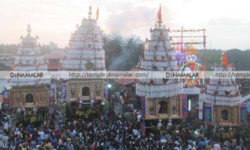 பாலக்காடு: பாலக்காட்டில், ரத சங்கமம் நிகழ்ச்சி, நேற்று கோலாகலமாக நடந்தது. பாலக்காடு கல்பாத்தியில், விசாலாட்சி சமேத விஸ்வநாதர் கோவில் தேர் திருவிழா, கடந்த, 14ம் தேதி துவங்கியது. நேற்று முன்தினம், மந்தக்கரை, மகா கணபதி கோவில் தேரோட்டம் நடந்தது. நேற்று மாலை, 6:15 மணியளவில், பழைய கல்பாத்தி லட்சுமி நாராயண பெருமாள் கோவில் தேர், சாத்தப்புரம் பிரசன்ன கணபதி கோவில் தேர், விசாலாட்சி சமேத விஸ்வநாதர் கோவில் தேர் இணைந்த ரத சங்கமம், உலா வந்தது; திரளான பக்தர்கள் பங்கேற்றனர்.