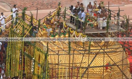 மூலவர் சன்னதி, தாயார் சன்னதி உட்பட, ஐந்து சன்னதிகள், ராஜகோபுரம், ரெங்கா ரெங்கா கோபுரம், கார்த்திகை கோபுரம் உட்பட, 10 கோபுரங்களுக்கும் மகா சம்ப்ரோக்ஷணம் கோலாகலமாக நடைபெற்றது. கும்பாபிஷேகம் இதை முன்னிட்டு, திருச்சி மாவட்டம் முழுவதும் உள்ளூர் விடுமுறை விடப்பட்டுள்ளது. பக்தர்களுக்கு பாதுகாப்பு வழங்கும் வகையில், ராஜகோபுரம், ரங்கா ரங்கா கோபுரம், வெள்ளை கோபுரம் உள்ளிட்ட, 12 இடங்களில், சிசிடிவி கேமரா பொருத்தப்பட்டுள்ளது. கோவிலின் பிரதான நுழைவு வாயில்களில், கோபுர வாசல்களில் மெட்டல் டிடெக்டர் பொருத்தியும், ஸ்கேனர் கருவியின் மூலம் உடமைகளை சோதனை செய்த பின், பக்தர்கள் உள்ளே அனுமதிக்கப்பட்டனர், ஆயிரத்துக்கும் மேற்பட்ட போலீசார் மற்றும் தீயணைப்பு வீரர்கள் பாதுகாப்பு பணியில் ஈடுபட்டு உள்ளனர்.