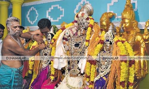 அரியாங்குப்பம்: அரியாங்குப்பம் மாரியம்மன் கோவிலில் வள்ளி, தெய்வானை சமேத சுப்ரமணிய சுவாமிக்கு நேற்று காலை திருக்கல்யாணம் நடந்தது.அரியாங்குப்பம் மாரியம்மன் கோவிலில் கந்தசஷ்டி விழாவையொட்டி, கடந்த 12ம் தேதி இரண்டு அடி உயரத்தில் ஐம்பொன்னால் செய்யப்பட்ட வள்ளி, தெய்வானை சமேத சுப்ரமணிய சுவாமி சிலை கரிக்கோலம் நடந்தது.14ம் தேதி முதல் 16ம் தேதி வரை சுவாமிக்கு அபிஷேக ஆராதனை, 1௭ம் தேதி கந்தசஷ்டி சிறப்பு பூஜை நடந்தது. நேற்று காலை வள்ளி, தெய்வானை சமேத சுப்ரமணியருக்கு திருக்கல்யாண உற்சவம் நடந்தது.