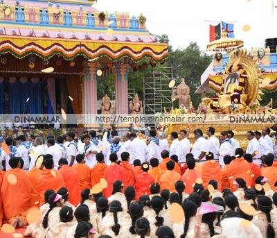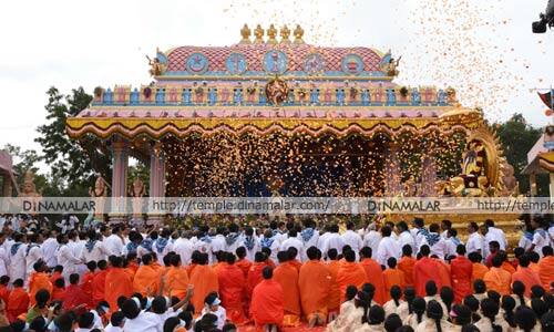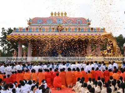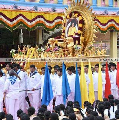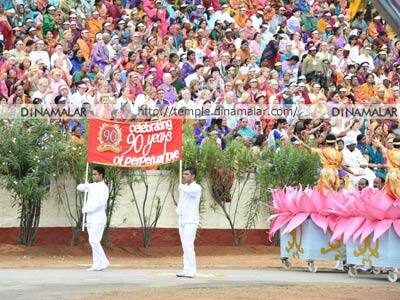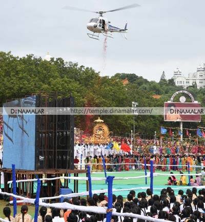 புட்டபர்த்தி: பகவான் ஸ்ரீ சத்ய சாய்பாபாவின் 90 வது பிறந்த நாளை முன்னிட்டு புட்டபர்த்தில் உள்ள ஹில்வியூ ஸ்டேடியத்தில் கூடியிருந்த பல ஆயிரக்கணக்கான பக்தர்கள் மத்தியில் அவரது திருஉருவ படம் தங்கரதத்தில் வைத்து கொண்டுவரப்பட்டது. அப்போது ெஹலிகாப்டரில் இருந்து மலர் தூவப்பட்டது.