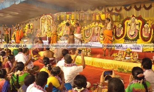புதுச்சேரி: புதுச்சேரியில் அறுபடை முருகன், வள்ளி, தெய்வானை திருக்கல்யாண உற்சவம் நேற்று நடந்தது. புதுச்சேரி அறுபடை முருக பக்தர்கள் மற்றும் அறுபடை முருகன் டிரஸ்ட் சார்பில், திருப்பரங்குன்றம், திருச்செந்துார், பழநி, சுவாமிமலை, பழமுதிர் சோலை, திருத்தணி ஆகிய அறுபடை முருகப் பெருமான் சுவாமிகளுக்கு, ஒரே நேரத்தில் திருக்கல்யாண உற்சவம், லாஸ்பேட்டை ஹெலிபேட் மைதானத்தில் நேற்று நடந்தது. இதையொட்டி நேற்று காலை 9:00 மணிக்கு விக்னேஸ்வர பூஜை, சத்ரு சம்கார ஹோமம், மகா தீபாராதனை நடந்தது. மாலை 4:05 நலங்கு வைபவமும், சீர்வரிசை வருதல், காசி யாத்திரை, மாலை மாற்றுதல், ஊஞ்சல் உற்சவம் நடந்தது. மாலை 6:30 மணிக்கு, திருமாங்கல்ய தாரணம், மகா தீபாராதனை நடந்தது. நேற்று தொடர்ந்து மழை பெய்தாலும், கொட்டும் மழையையும் பொருட்படுத்தாமல், பக்தர்கள் குடையுடன் காத்திருந்து, திருக்கல்யாணத்தை கண்டு, சுவாமி தரிசனம் செய்தனர். பக்தர்களுக்கு அன்னதானம் வழங்கினர். நலத்துறை அமைச்சர் ராஜவேலு, லட்சுமிநாராய ணன் எம்.எல்.ஏ., கலந்து கொண்டனர். ஏற்பாடுகளை, அறுபடை முருக பக்தர்கள், அறுபடை முருகன் டிரஸ்ட் நிர்வாகிகள் செய்திருந்தனர்.