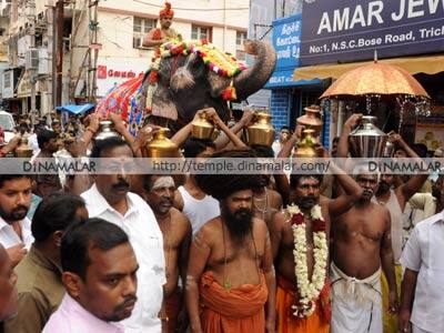 கும்பாபிேஷகம் நடைபெறுவதை முன்னிட்டு, திருச்சி காவிரியாற்றில் இருந்து யானையின் மீது புனித நீர் ஊர்வலமாக எடுத்து வரப்பட்டது. விழாவில் ஏராளமான பக்தர்கள் கலந்து கொண்டனர். கும்பாபிேஷகத்தை முன்னிட்டு, யாகசாலைகள் தயார் நிலையில் உள்ளது.